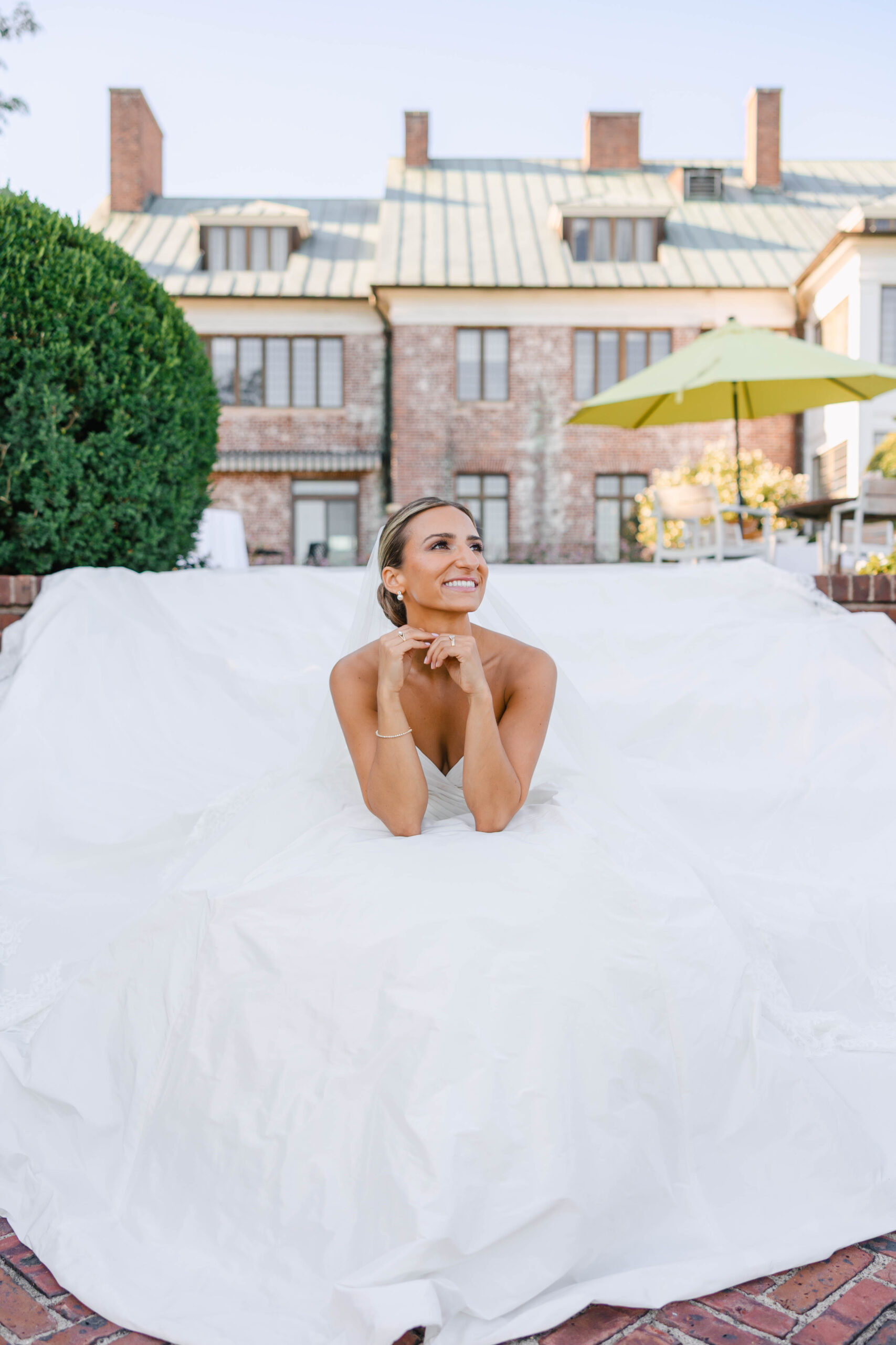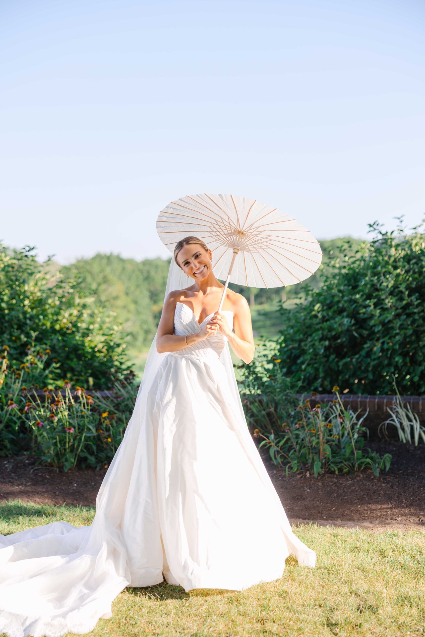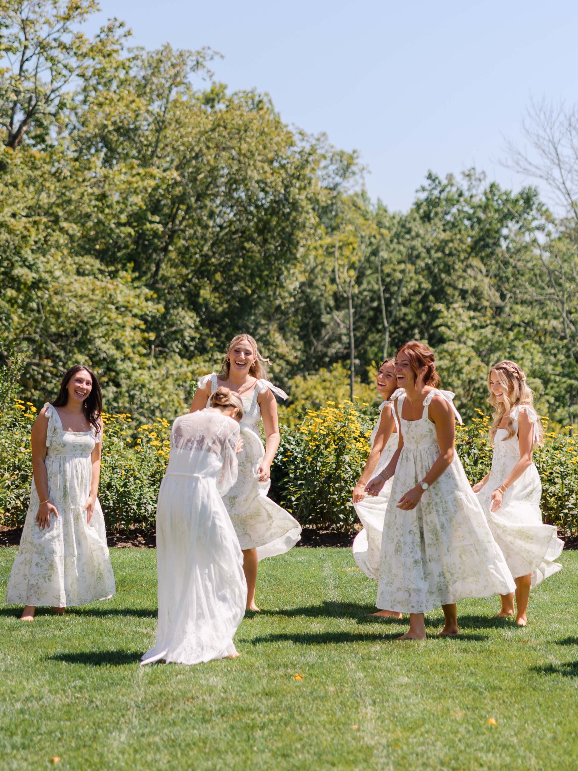 As soon as we arrived back at Hamilton Farm, the wedding party “understood the assignment.” To really lean into the organic, European aesthetic, we sourced white parasols and captured candid, joyful moments—the bridesmaids even fluffed Kelsey’s dress like a parachute!