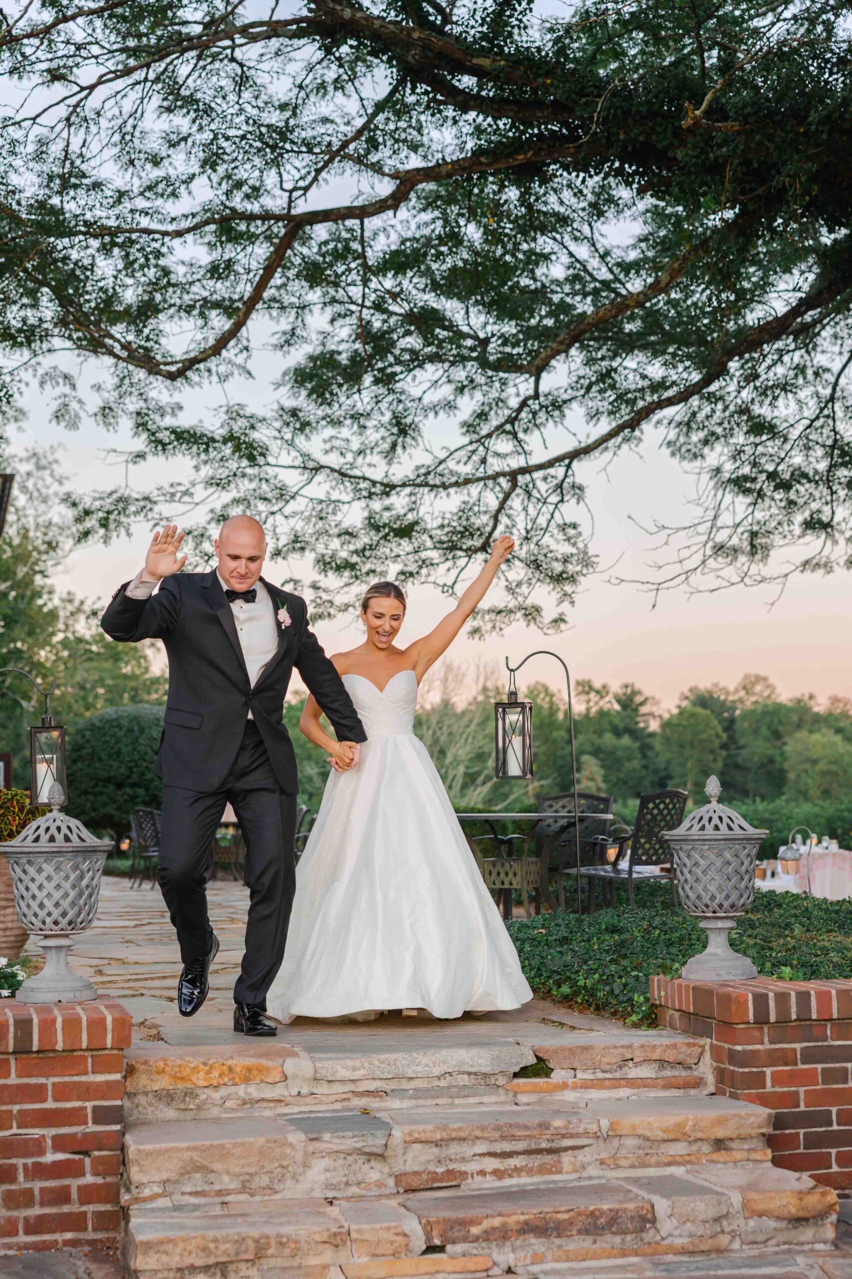 As the sun dipped below the horizon, it cast a warm, glowy light over the brick architecture. And, Kelsey and Vinny made their grand entrance into the courtyard! Together, they had transformed Hamilton Farm wedding venue into a true al fresco dream. Every detail was attune to their vision- colorful hand-pressed napkins, antique gas lamps, and even a limoncello toast in lieu of champagne! Shepard lamps illuminated the perimeter, creating an intimate glow as guests dined under the moonlight. Each detail brought their European vision to life!