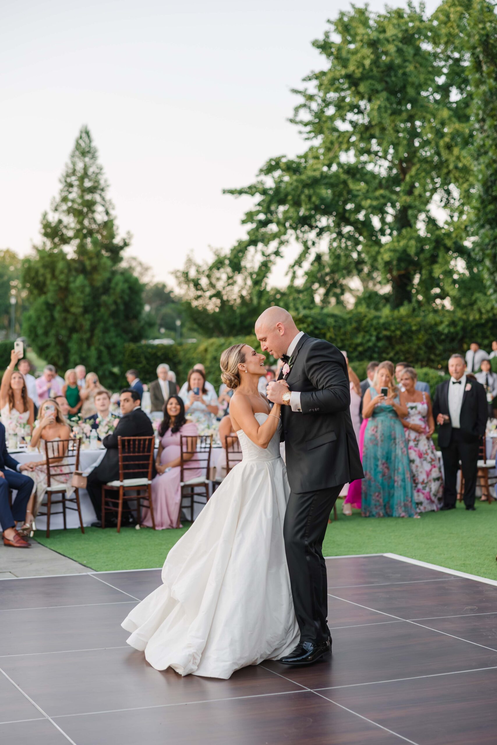 Hamilton Farm Golf Club in Peapack-Gladstone served as the perfect “home away from home,” offering the quaint European essence and historic architecture needed to host the al fresco courtyard reception they had always imagined.