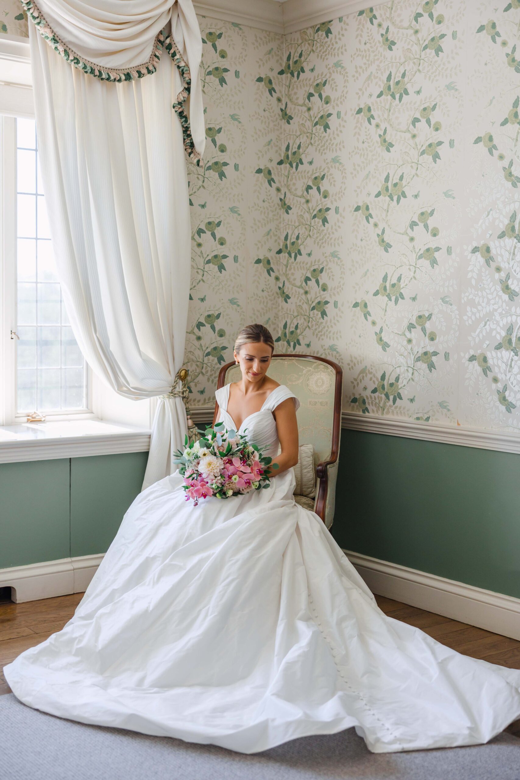 After we wrapped up with the group, it was time for Kelsey and Vinny’s portraits. We explored every corner of the estate, and ended in the sunroom for a “signature cocktail cheers.” Looking back, it was the perfect, sophisticated transition into the festivities.